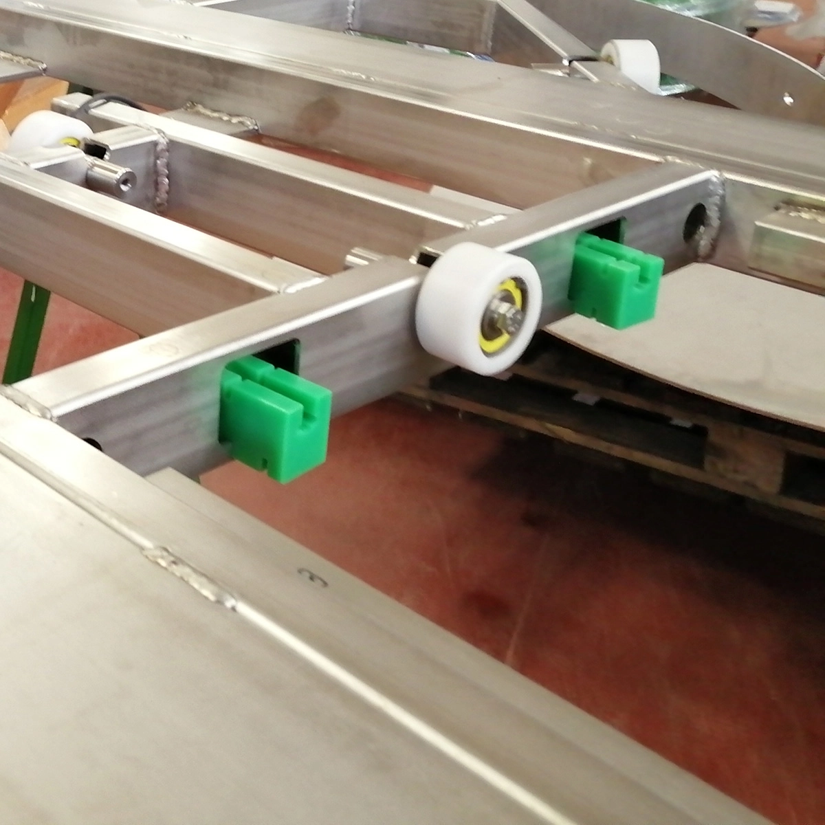 Basamento della macchina con tubolari in acciaio inox incrociati e saldati per resistere nel tempo.