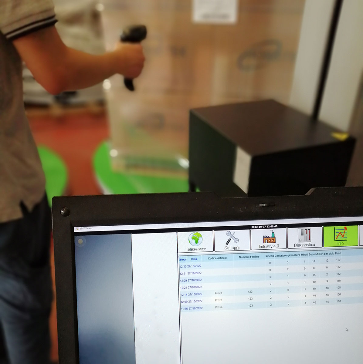 Galaxy Full Tracing (opzione). La prima macchina avvolgitrice di pallet con sistema di track & tracing integrato. La macchina rileva il peso, le dimensioni del pallet e scatta una fotografia per ogni lato del pallet. Per ogni pallet da avvolgere c’è la possibilità di abbinare alla registrazione qualsiasi informazione utile alla spedizione. Ad imballo compiuto ci sarà la possibilità di aggiungere tutti i dati di avvolgimento come durata del ciclo, programma utilizzato, il numero di giri, il consumo di film ed altro. - GALAXY FULL TRACING FOTO