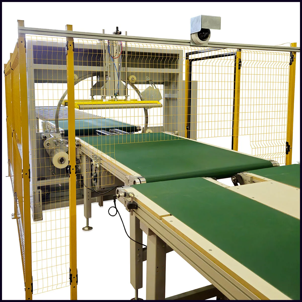 Configurazione di una HORIZON-HX 1200 con convogliatori a nastro e con protezioni perimetrali. - ANELLO IN ACCIAIO PIENO