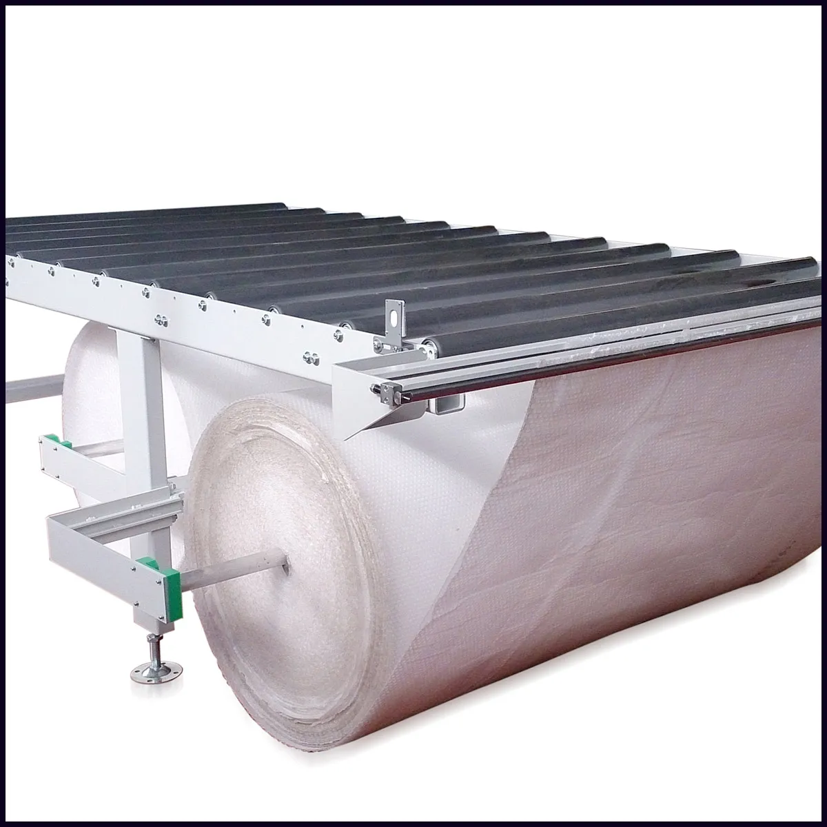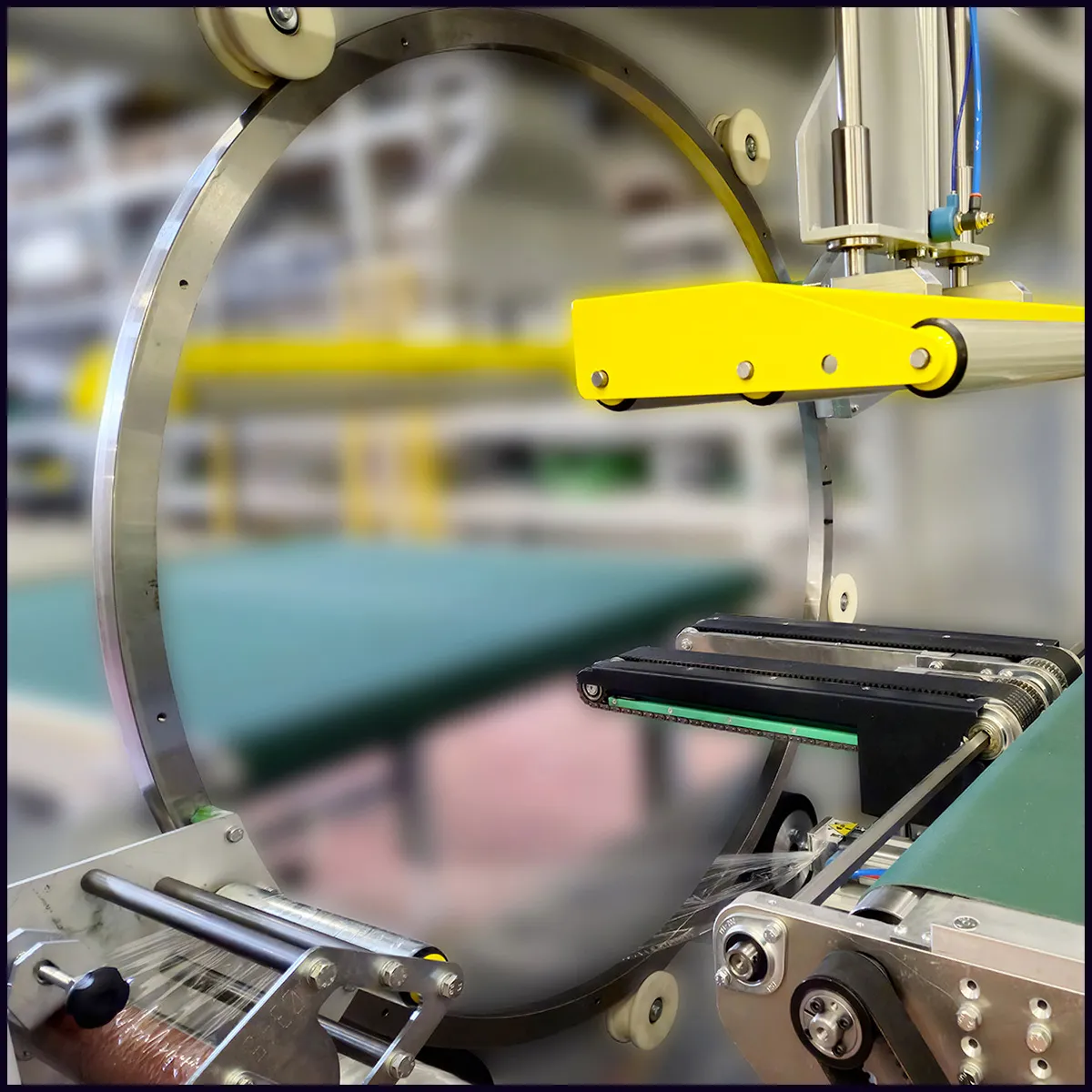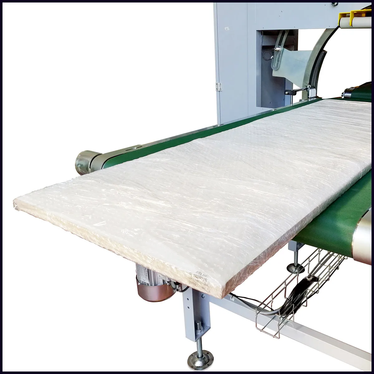 Ogni gruppo pressore è composto da rulli folle ricoperti in pvc regolabili in velocità ed in pressione per garantire la fasciatura e l’imballaggio in sicurezza.