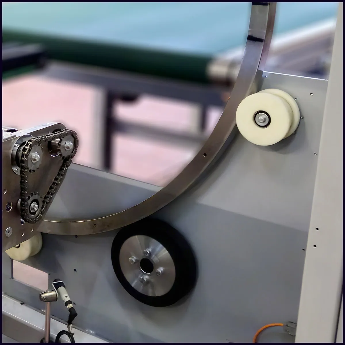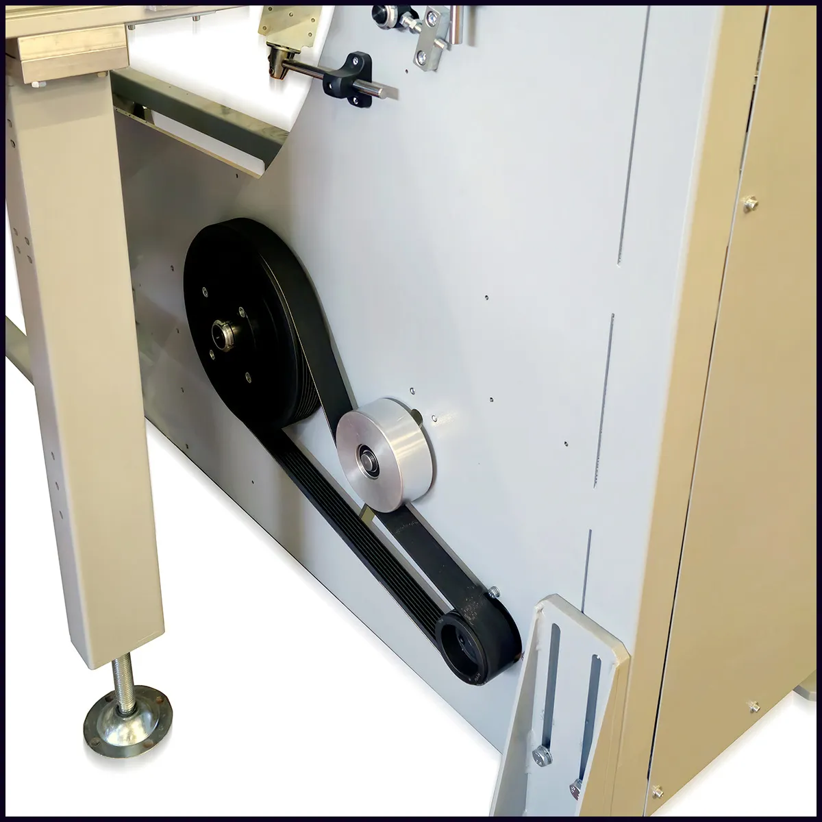 La trasmissione alla rotazione avviene tramite cinghia poly-V per una ottenere il miglior trasferimento di coppia ed una altissima silenziosità. In alcuni casi è possibile installare la opzione “doppia trazione” che prevede una seconda cinghia di trasmissione per ridurre i tempi di accelerazione e decellerazione, aumentando la produttività della macchina. - UNA GUIDA PRECISA