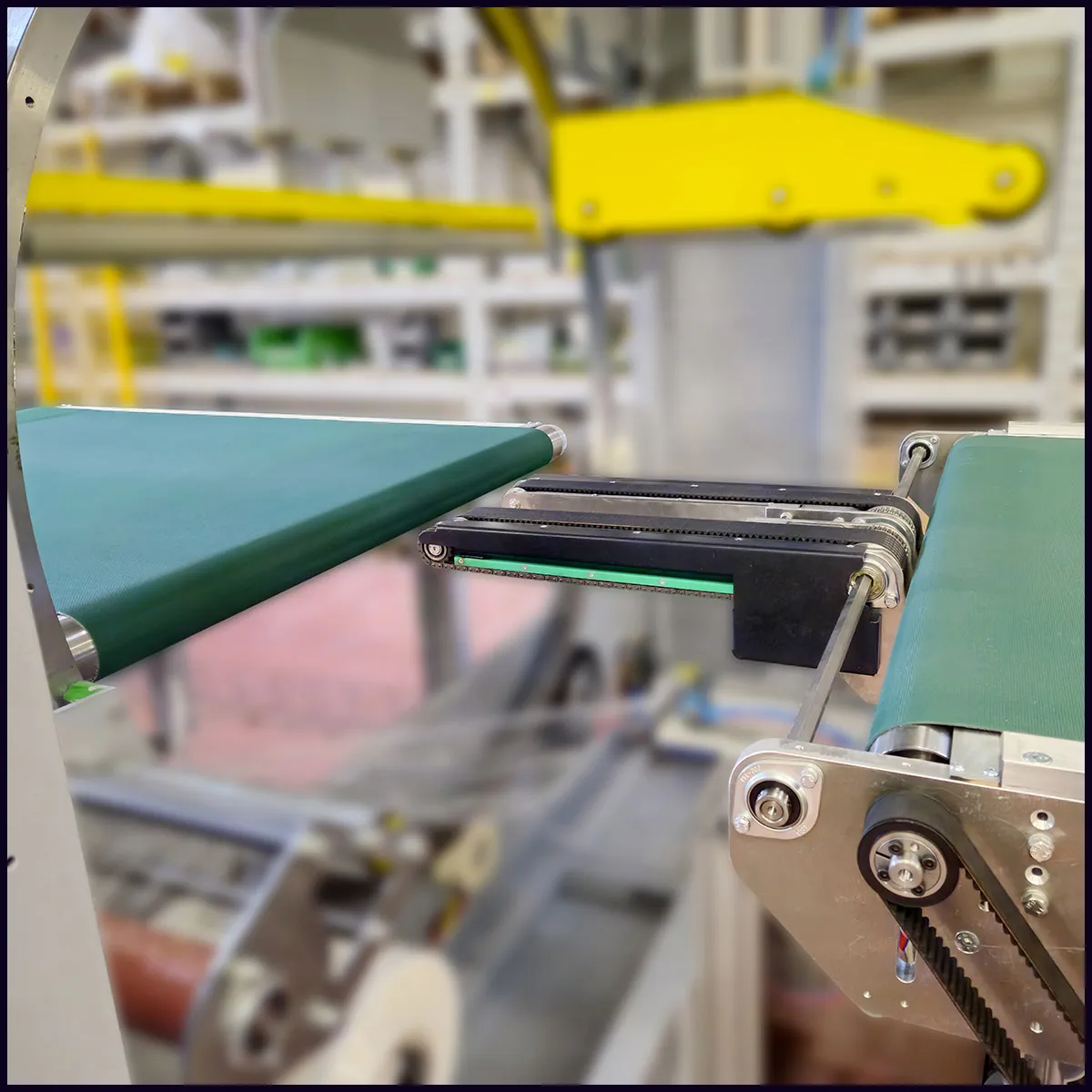 Opzione convolgiatore motorizzato a ponte “Easy Transfer” per il transito dei prodotti più corti all’interno della zona di imballo. Sopra al ponte ci sono le cinghie motorizzate che fanno avanzare il prodotto. Sotto al ponte ci sono le catene motorizzate inverse che aiutano il film estensibile ad uscire dal ponte. - OPZIONE DISPENSER MANUALE DI PLURIBAL